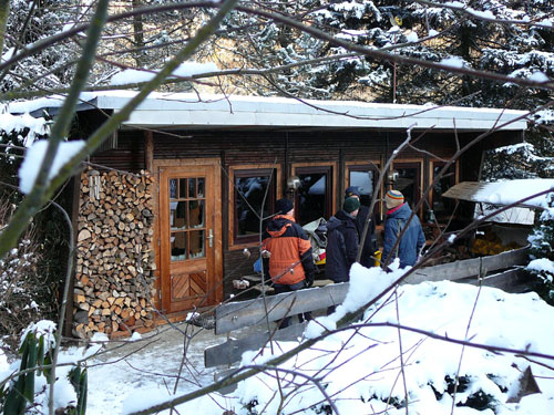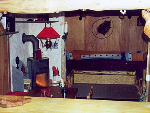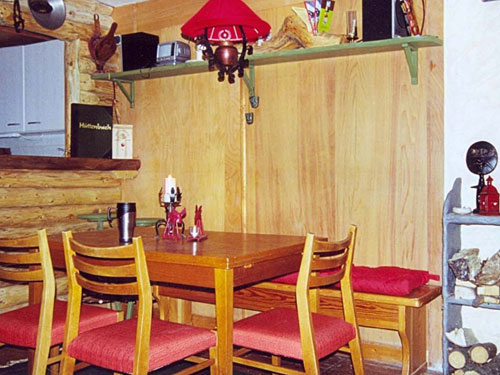 Rustikale Einrichtung sorgt für urige Atmosphäre und ein Kaminofen für die entsprechende Gemütlichkeit. Drei Einzelbetten lassen sich auch als Sitzecke nutzen. Sie können zum Hüttenbett mit vier Matratzen oder zum Matratzenlager für bis zu 7 Schlafsäcke erweitert werden.