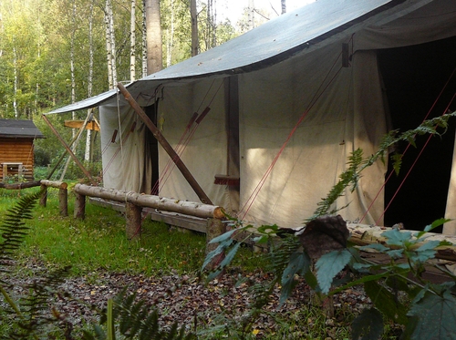 Für Reisegruppen und Schulklassen können wir die Übernachtung in zwei großen Mannschaftszelten anbieten. Die Zelte haben einen Holzfußboden und bieten Platz für je 10 - 15 Personen. Dazu gehören jede Menge Utensilien der Campingküche wie große Grills, Besteck und Geschirr sowie große Töpfe und Pfannen für die Feuerstelle. Auch unser Küchenherd aus Uromas Zeiten kann eingehitzt werden. Dies alles soll es euch leicht machen, einen Campingausflug zu organisieren. Lediglich Isomatten und Schlafsäcke müssen mitgebracht werden.