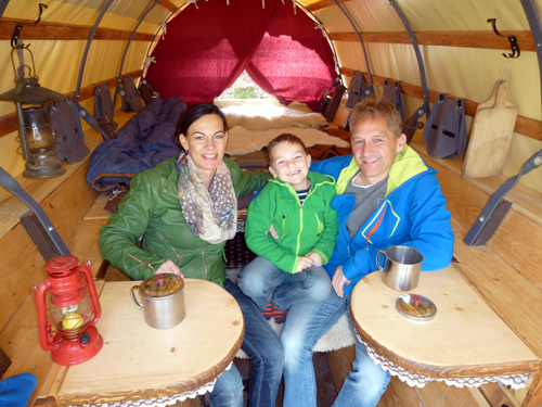 Übernachten im Siedlerwagen