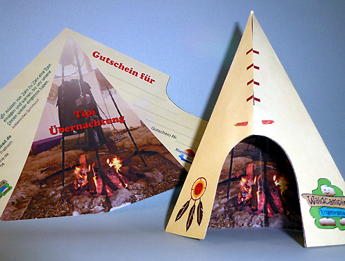 Für Tipi, Siedlerwagen und Bett im Wald haben wir sehr schöne Gutscheine erstellt. So können die Übernachtungen ganz einfach verschenkt werden.
